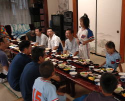 午後の練習開始 雨も上がり、練習日和となりました。 各チーム、守備の練習を行いました。 1〜3年生は、待ちに待ったお母さんチームと対戦です。合宿の成果を発揮できたかな!? |
